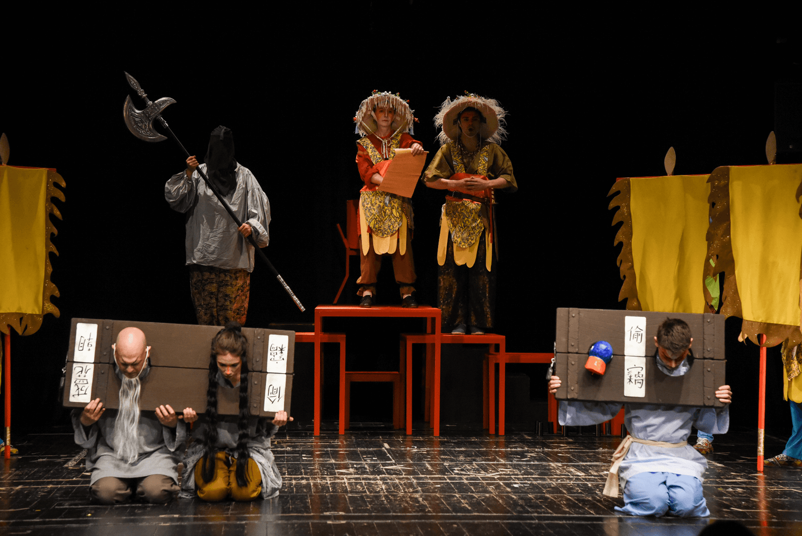 Kao i ostali dramski tekstovi Den Totera, i ovde je u pitanju „dobro skrojen pozorišni komad“. Pažljiva analiza ovakvih tekstova nagrađuje čitaoca saznanjem da nijedan deo teksta nije na svom mestu slučajno. Iako sve odaje utisak improvizacije, ta lakoća dolazi iz pažljivog piščevog planiranja pri stvaranju drame. Zanimljivo u ovom tekstu je izuzetno neobično kombinovanje tradicionalnog kineskog pozorišta i izvornog komičkog vodvilja (poput onog koji se može susresti upravo u Čaplinovim filmovima). Veza između tradicionalnog kineskog pozorišta, iz kog se razvila pekinška opera, i između pučkog pozorišta iz kog se razvio varijete, jesu geg, akrobatske scene, značajna uloga muzike (posebno ritmičke sekcije), i veza između pokreta, priče i glasa koja podseća na cirkuske veštine.